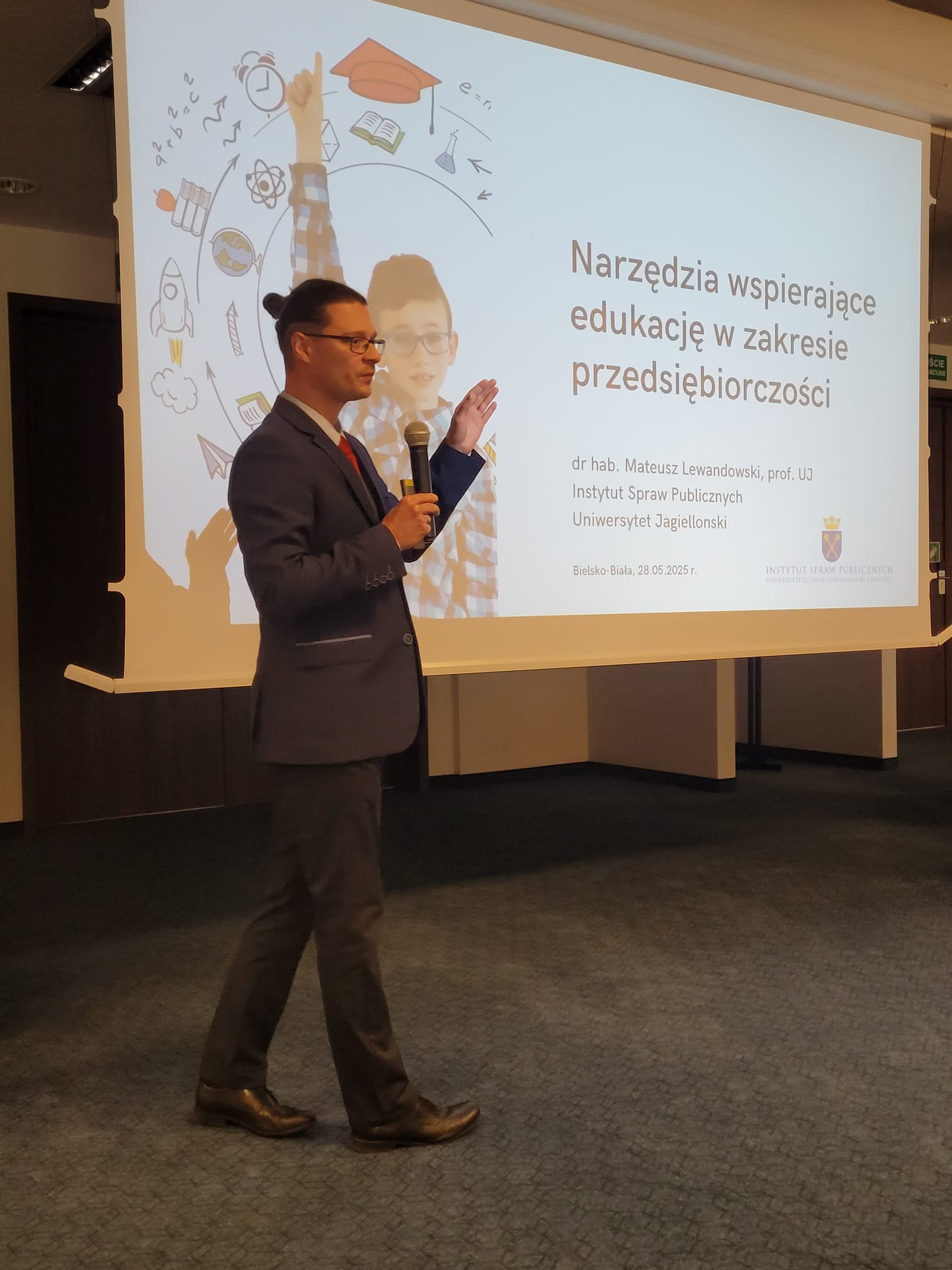 2. Prelekcję pt.: „Narzędzia wspierające edukację w zakresie przedsiębiorczości” wygłosił Prof. Uniwersytetu Jagiellońskiego – Mateusz Lewandowski.