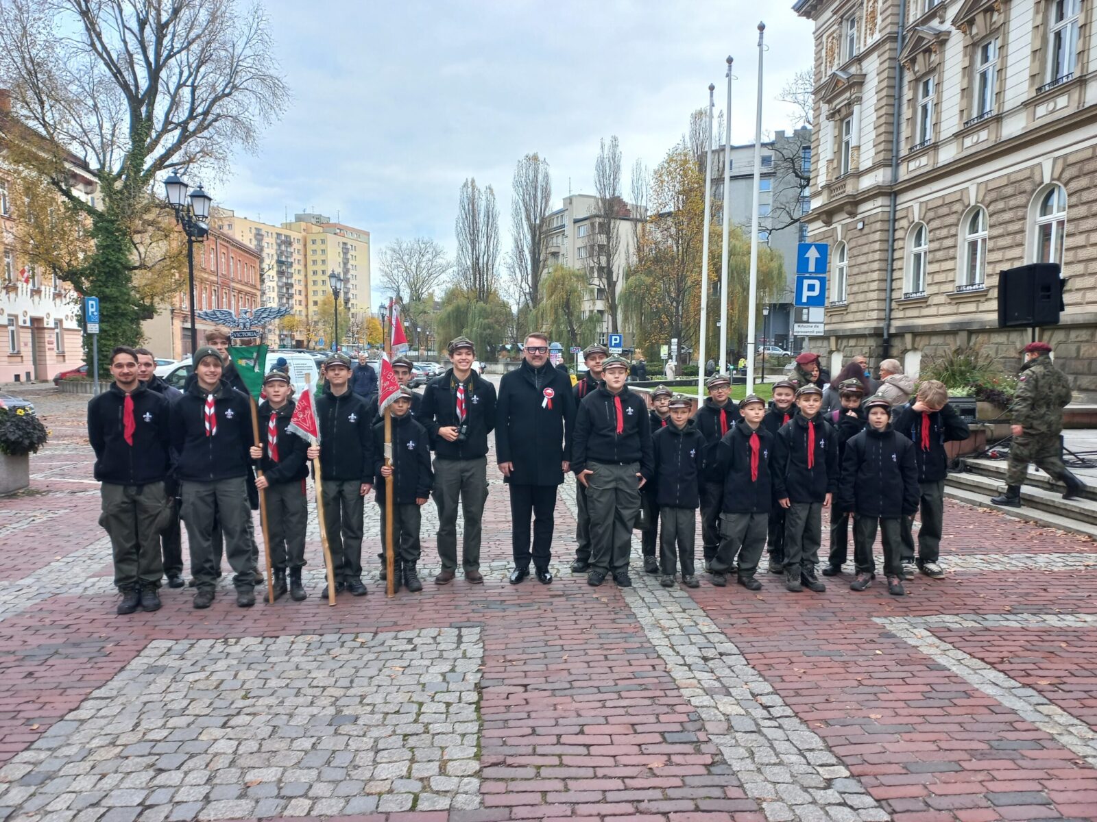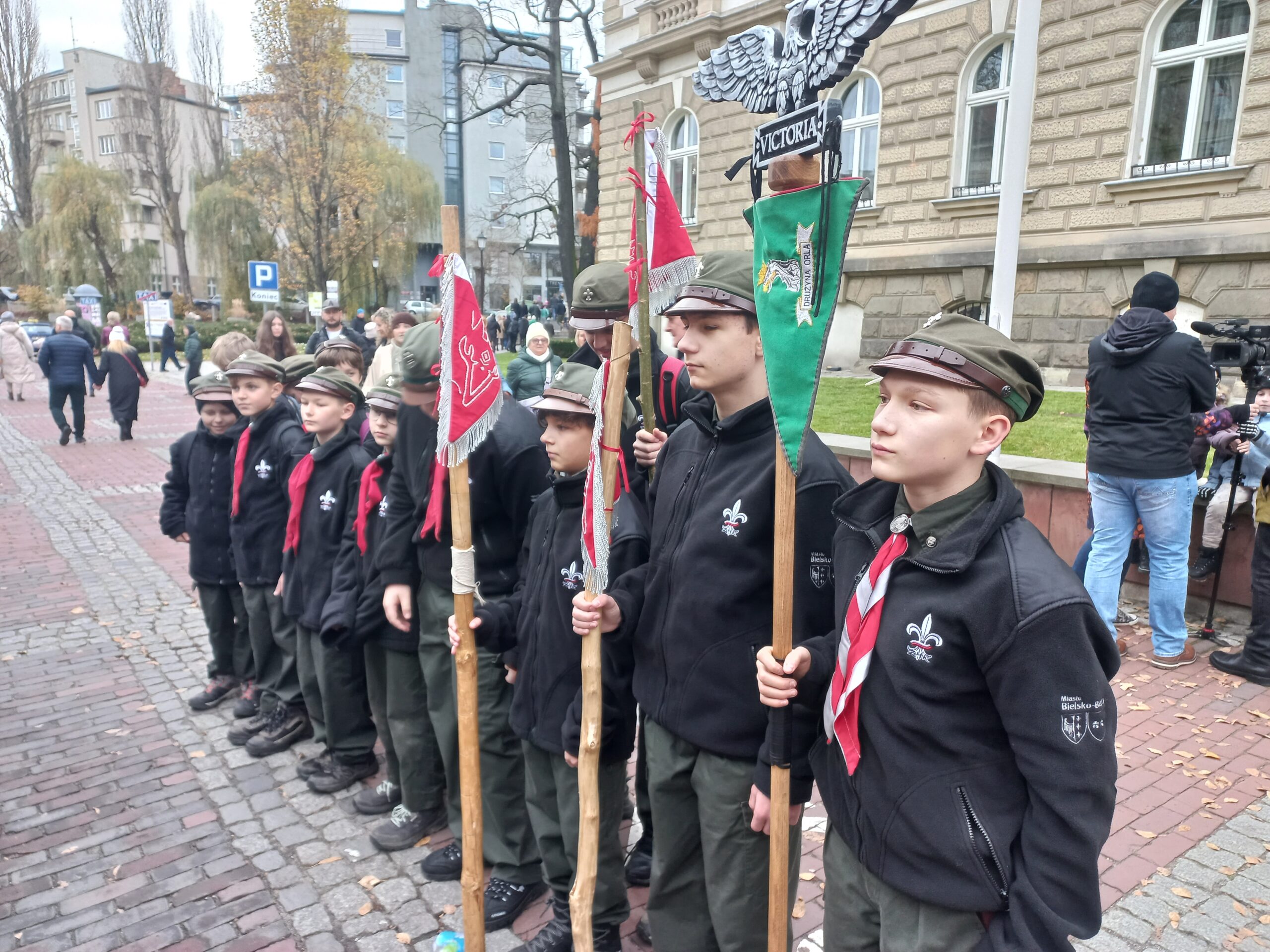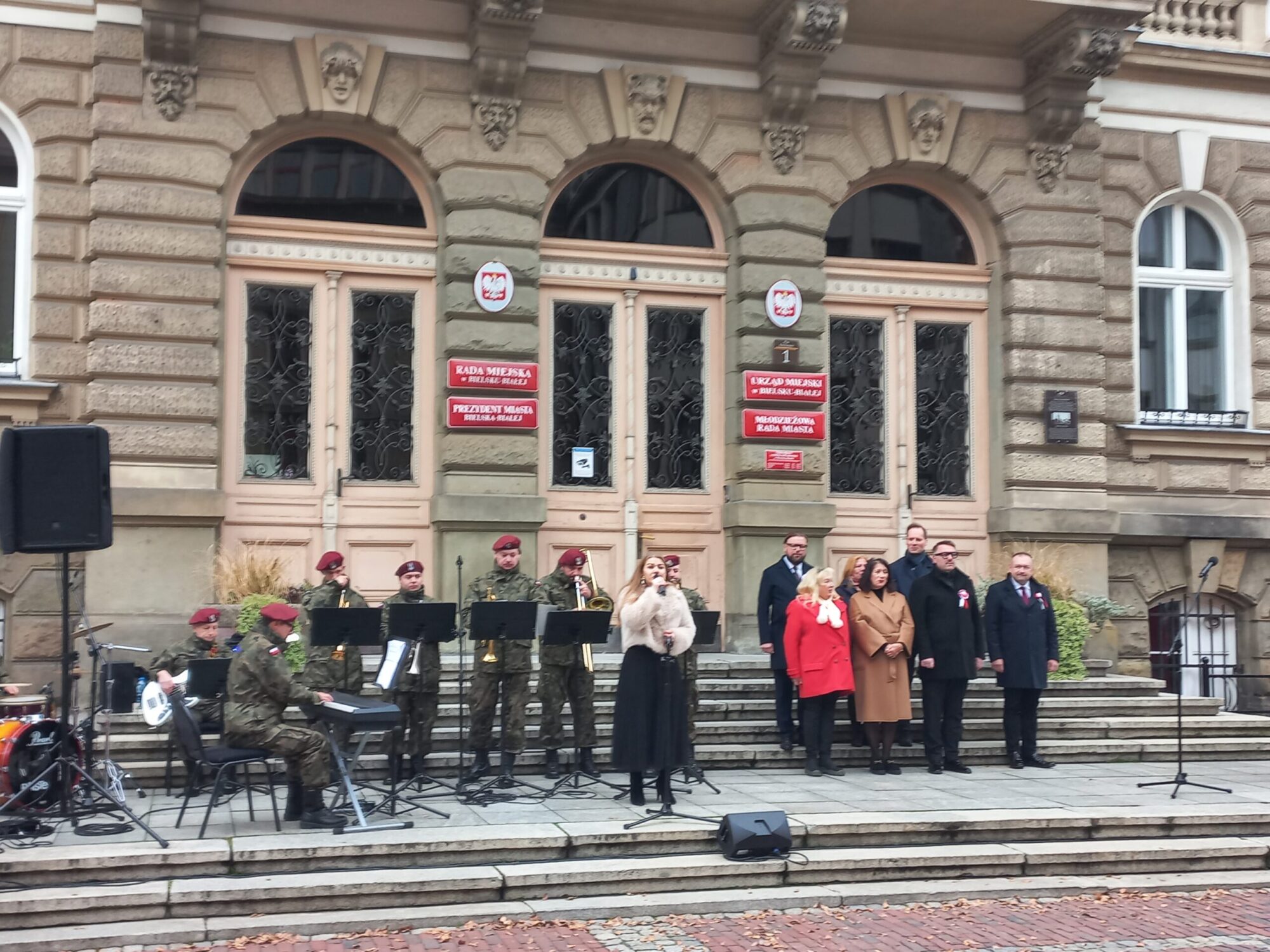 W dniu 11 listopada 2025 roku na Placu Ratuszowym w pięknym mieście Bielsku-Białej liczna grupa naszej społeczności, wspólnie z Władzami Miasta i w pełnym radości nastroju, odśpiewała Hymn Polski. Cieszył widok licznie zgromadzonych rodzin, a szczególnie małych dzieci. Dało się wyczuć podniosły nastrój i sympatyczne nastawienie zgromadzonych wobec siebie. Kapela wojskowa zagrała szereg patriotycznych pieśni, odśpiewanych wspólnie ze wspaniałą solistką. Nie obyło się bez bisu. Po uroczystości wiele osób odbywało krótkie rozmowy z Prezydentem Miasta Jarosławem Klimaszewskim, często robiąc sobie pamiątkowe zdjęcia.