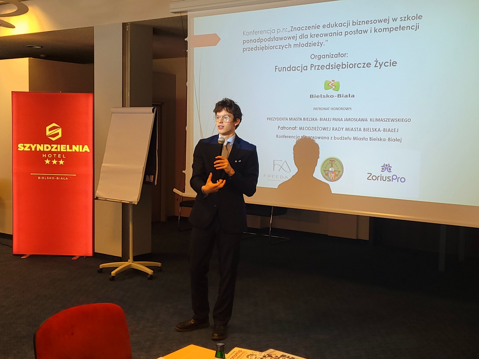 W dniu 28.05.2025 roku odbyła się w Centrum Konferencyjnym ZIAD S.A. w Bielsku-Białej konferencja pn.: „Kształtowanie postaw przedsiębiorczych młodego pokolenia”, zorganizowana przez Fundację Przedsiębiorcze Życie. Konferencja została sfinansowana z budżetu Miasta Bielska-Białej.